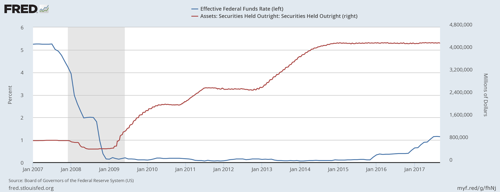 Monetary policy is the least of our now-staggering problems. Unfortunately, the wingnut in the White House is busy creating more difficulty for us, and making the problems we have worse. Fortunately, he has as yet not screwed up the Fed, and the slate of would-be Fed Chairs doesn't include anyone outlandish. More on that later.