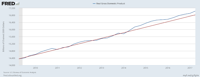But, I think Yellen and her colleagues are actually following the right policy. Modest increases in the Fed's interest rate target in this context is the correct prescription. But doing the right thing for the wrong reason won't help you in the long run. We're fortunate, though, that not much is likely to go wrong here. If inflation stays low, and the FOMC loses its appetite for interest rate increases, so what? Low inflation is fine, and it's close enough to 2% as not to be embarrassing. No big deal.